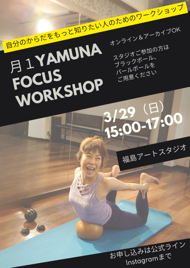 先月は胸郭周りの外側骨格筋にアプローチしましたが、今回は内側から内臓にアプローチしたヤムナワークです。